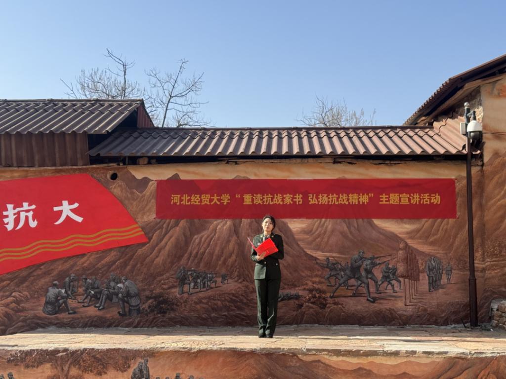董美辰同学则身着正装,现场诵读《江竹筠的家书》,一字一句间传递出革命先烈“舍小家为大家”的坚定信仰。当青春的声音回荡在抗大旧址,在场师生仿佛跨越时空,与先烈的信仰产生深刻共鸣,不少人眼眶湿润。