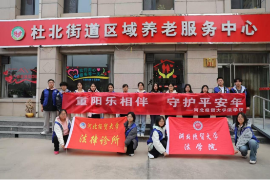 法暖重阳,情系桑榆。恰逢重阳节来临之际,为传承弘扬敬老爱老的优秀传统美德,增强老年人防诈意识,10月23日我院联合杜北街道团工委,组织志愿者们来到杜北街道区域养老服务中心,开展以“重阳乐相伴,守护平安年”为主题的养老院普法宣传志愿活动,为老人们带来温暖关怀,并加强防诈骗宣传,帮助他们守好“钱袋子”。