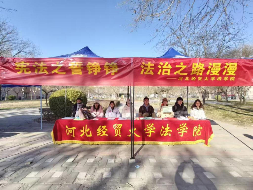 在石家庄市文化广场举办的河北省国家宪法日集中宣传活动中,我院师生充分发挥专业优势,通过展板展示、资料发放、案例解读等形式,向市民普及宪法常识及青少年权益保护相关法律法规。针对校园法治、未成年人保护等热点问题,师生们结合典型案例细致答疑,既传递了宪法权威,又提供了实用法律指引,获得现场群众与同行单位的一致认可。活动期间,省委领导莅临指导,对我院立足专业服务普法的实践举措给予肯定,勉励师生持续发挥高校法学人才与智力优势,推动青少年法治教育走深走实。