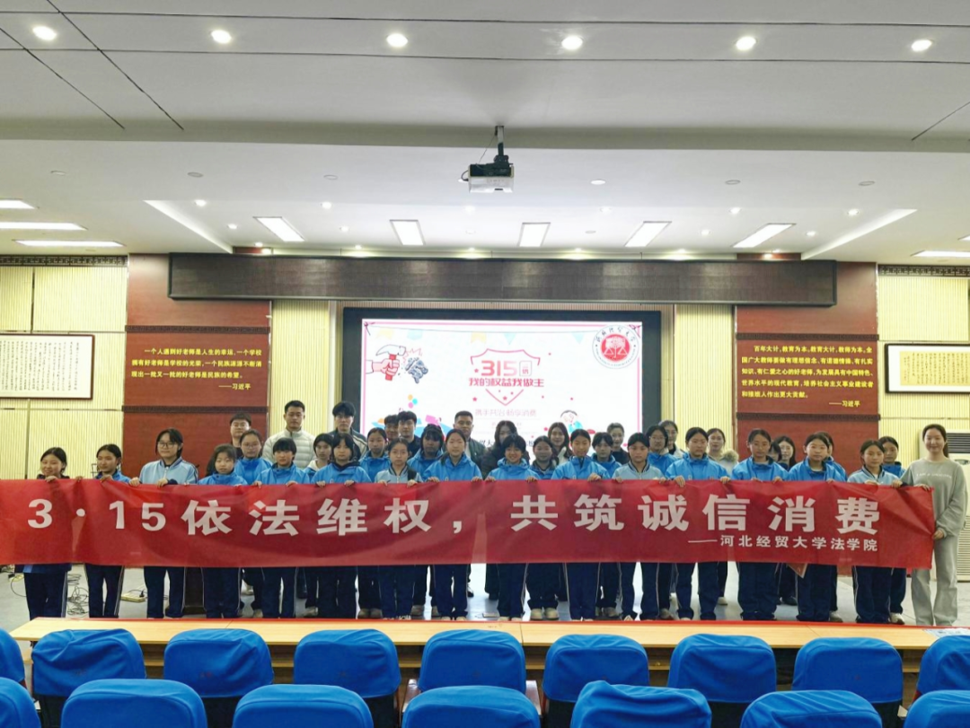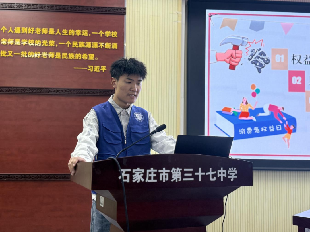 为迎接3·15国际消费者权益日,进一步增强青少年法治意识和消费维权能力,营造安全、健康、有序的校园消费环境,3月13日下午,我院联合石家庄市新华区杜北街道司法所,在团委书记梁贺超的带领下,走进石家庄市第三十七中学,开展“3·15消费者权益保护法进校园”主题法治宣传活动,为学生们送上了一堂生动实用的消费维权法治课。