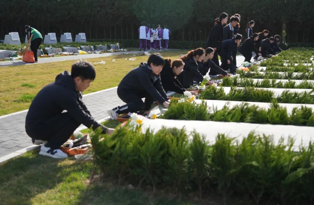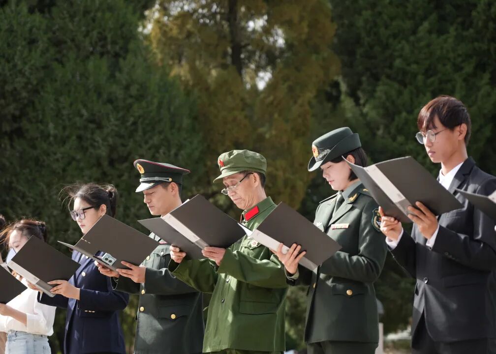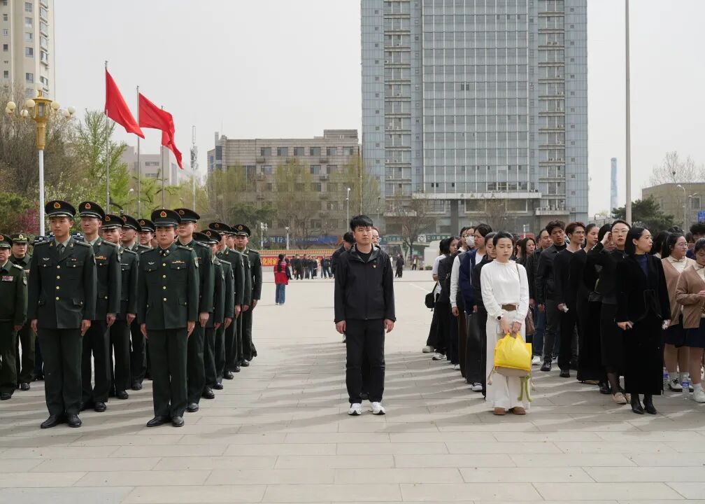 为深切缅怀革命英烈,传承红色基因,厚植家国情怀。4月3日下午,tyc7111cc太阳成集团联合陆军工程大学(石家庄校区)、河北科技大学、河北医科大学、河北师范大学、河北工程技术学院、河北美术学院六所高校及石家庄市石岗大街第二小学、高新区第一小学两所小学,携手10名参战老兵代表,赴华北军区烈士陵园开展“缅怀革命英烈 赓续红色血脉 厚植家国情怀”清明祭祀活动,以庄重的仪式追思英烈事迹,凝聚奋进力量。tyc7111cc太阳成集团党委书记黄华、团委书记梁贺超带领16名研究生参与本次活动。