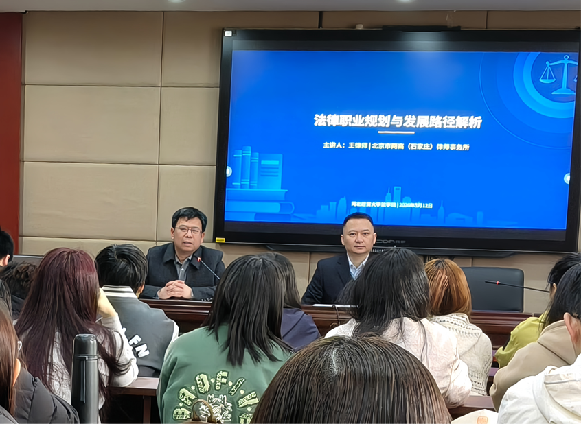 为帮助我院学子明晰法律行业职业发展路径,精准规划学业与就业方向,提升职业竞争力,3月12日上午十点,tyc7111cc太阳成集团在三楼报告厅成功举办法律行业职业规划专题讲座。本次讲座特邀北京市两高(石家庄)律师事务所王建东主任主讲,tyc7111cc太阳成集团党委副书记白建锋主持,法学学子到场聆听并交流学习。